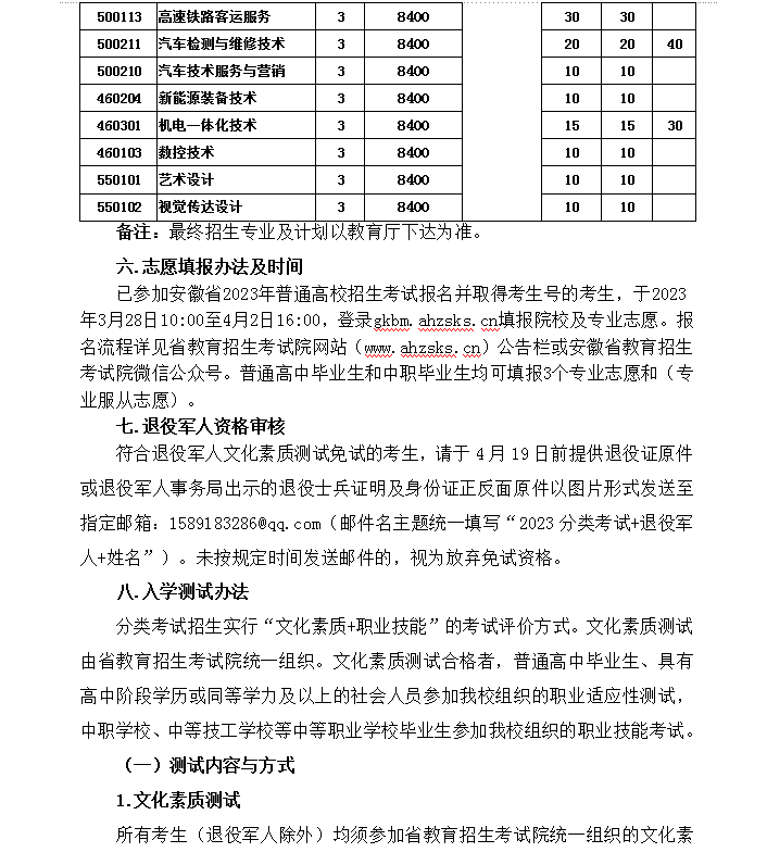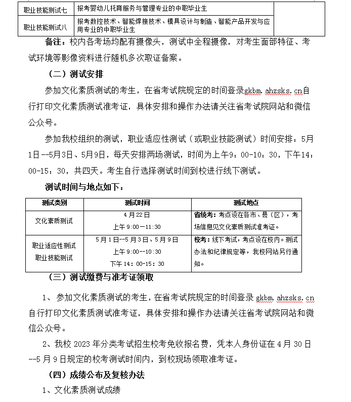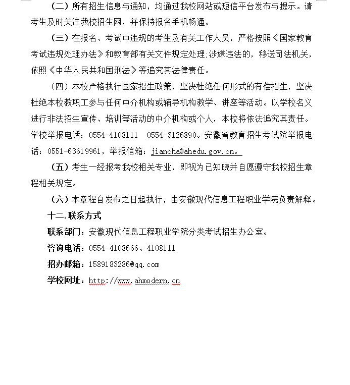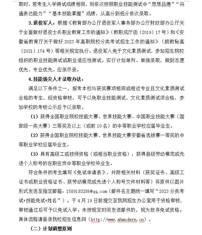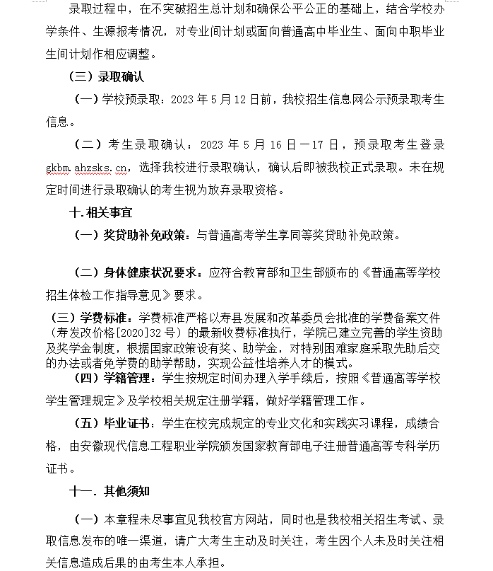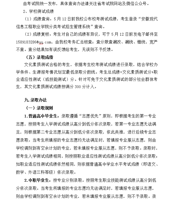 安徽现代信息工程职业学院2023年分类考试招生章程